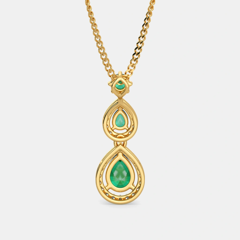 Diamond And Simulant Emerald Pendant In 18Kt Yellow Gold (1.725 gram) with Diamonds (0.2640 Ct)